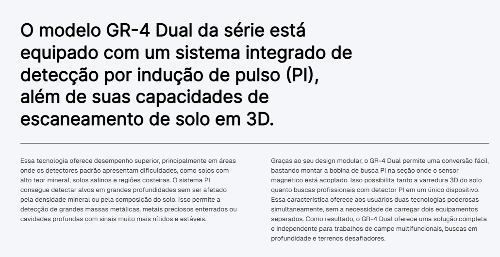 - Adequado para arqueologia, busca de tesouros e levantamentos geológicos.